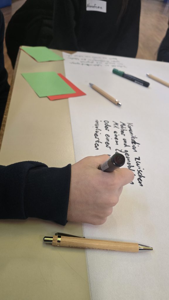 Im Zentrum des Tages stand der intensive Austausch in zwei Phasen: Zuerst wurden in einem dynamischen Speed-Café erste Impulse gesammelt und verschiedene Themenbereiche sondiert. Diese Ideen wurden anschließend in einem sogenannten Deep-Café vertieft. In diesen intensiven Themen-Cafés setzten sich die Jugendlichen mit einer Vielzahl an Fragen auseinander. Neben klassischen politischen Inhalten standen vor allem die mentale Gesundheit, Nachhaltigkeit und der Umweltschutz, Bildung und viele weitere Themen im Fokus der Gespräche.